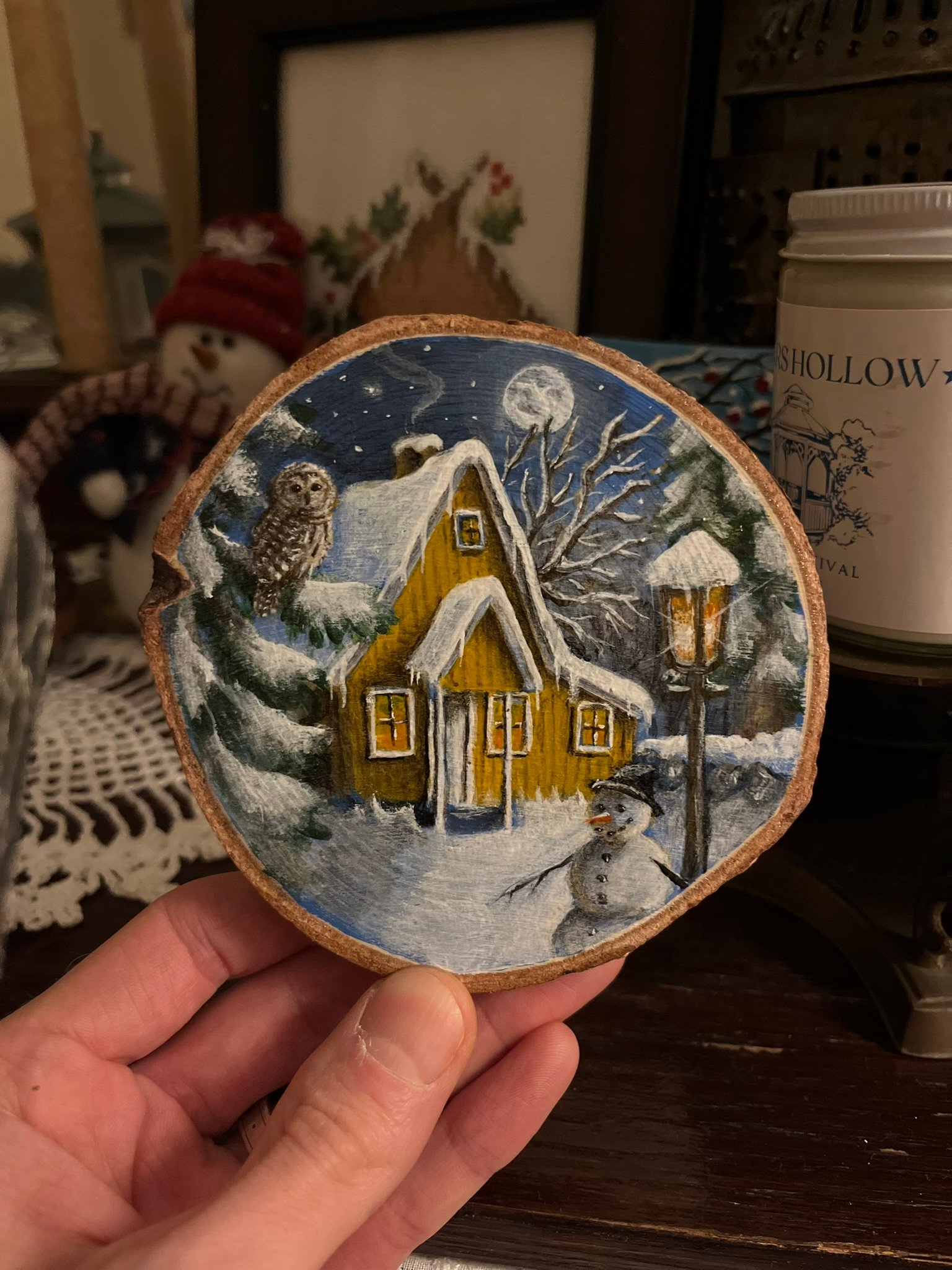 But if you are interested in a CUSTOMIZED painting on wood (approximately 4 inches), just purchase from this listing and give me a message on what scene or image you request on your wood piece.
