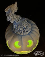 This White Jack O'Lantern has a cool green (northern light) glowing face that gives exactly the right mood for the Winter months.