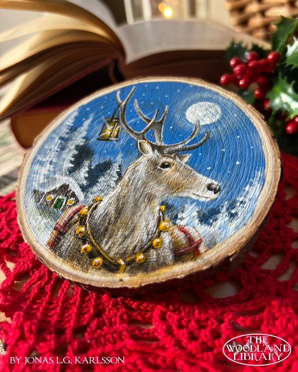 This painting is inspired by my Scandinavian Christmas roots and Santa's many helpers during the holidays.